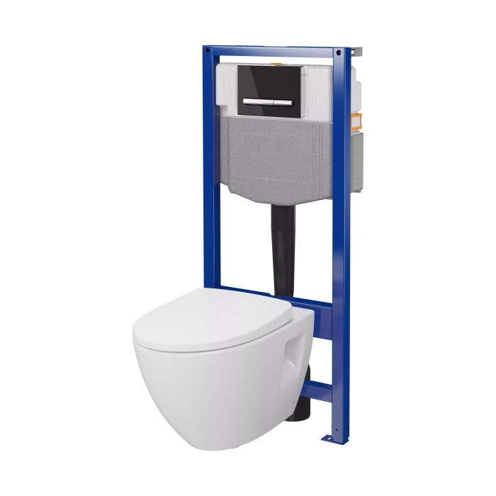 Cersanit concealed WC set – MODUO PLUS, wall-hung toilet with soft-close (SC) seat, black flush button.