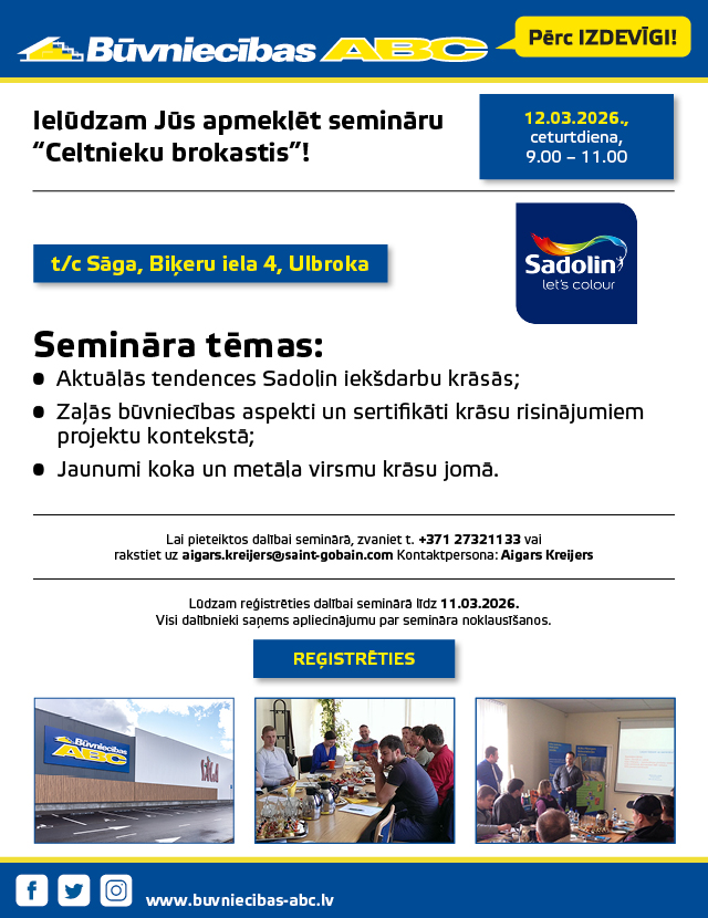 Ielūdzam Jūs apmeklēt semināru 12.03.2026 sadarbībā ar SADOLIN