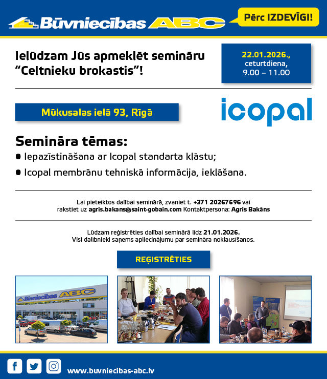 Ielūdzam Jūs apmeklēt semināru 22.01.2026 sadarbībā ar ICOPAL