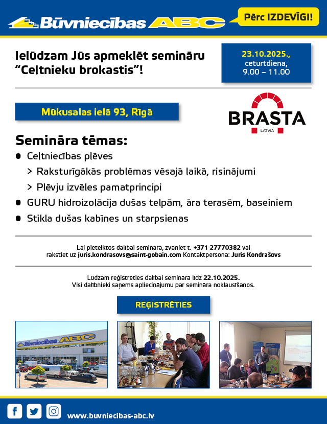 Ielūdzam Jūs apmeklēt semināru 23.10.2025. sadarbībā ar BRASTA LATVIA