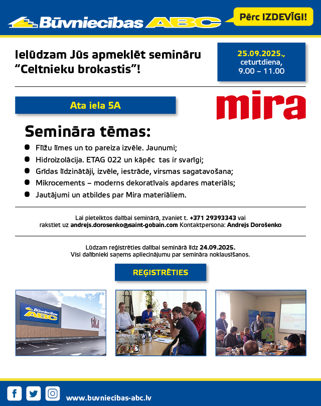 Ielūdzam Jūs apmeklēt semināru 25.09.2025. sadarbībā ar MIRA