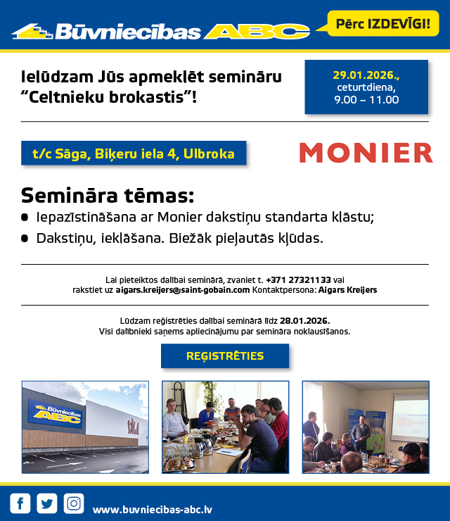 Ielūdzam Jūs apmeklēt semināru 29.01.2026 sadarbībā ar Monier