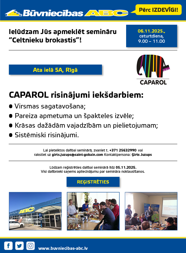 Ielūdzam Jūs apmeklēt semināru 6.11.2025. sadarbībā ar CAPAROL