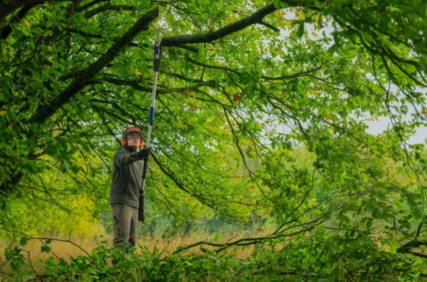 Pateicoties 2,9 m teleskopiskajam kātam, tas viegli apgriež augstus kokus