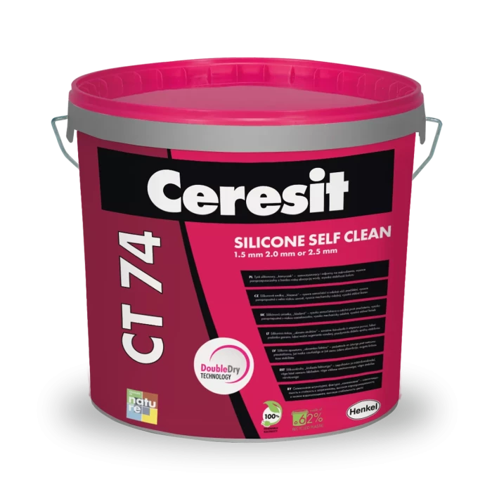 Ceresit CT 74 ir paredzēts plānkārtas apmetumu veidošanai siltināšanas sistēmās, uz betona pamatnēm, parastiem apmetumiem, ģipša pamatnēm un skaidu plātnēm, ģipškartona plāksnēm un citām virsmām. Mēs iesakām lietot CT 74 kā fasāžu apmetumu Ceresit ETICS (ārējās siltumizolācijas kompozītās sistēmas) ietvaros, izmantojot EPS plātnes (putu polistirola plātnes) un minerālvati. CT 74 apmetumu ir ieteicams klāt uz ārsienām, kur nepieciešama liela tvaika caurlaidība. CT 74 ir pieejams plašā krāsu diapazonā, taču intensīvu, tumšu krāsu gadījumā materiāla uzklāšanā uz fasādēm jāaprobežojas ar nelieliem laukumiem, piem., arhitektoniskajām detaļām. Apmetums CT 74 ir aizsargāts pret bioloģisku piesārņojumu, piemēram, sēnītēm, pelējumu un aļģēm.