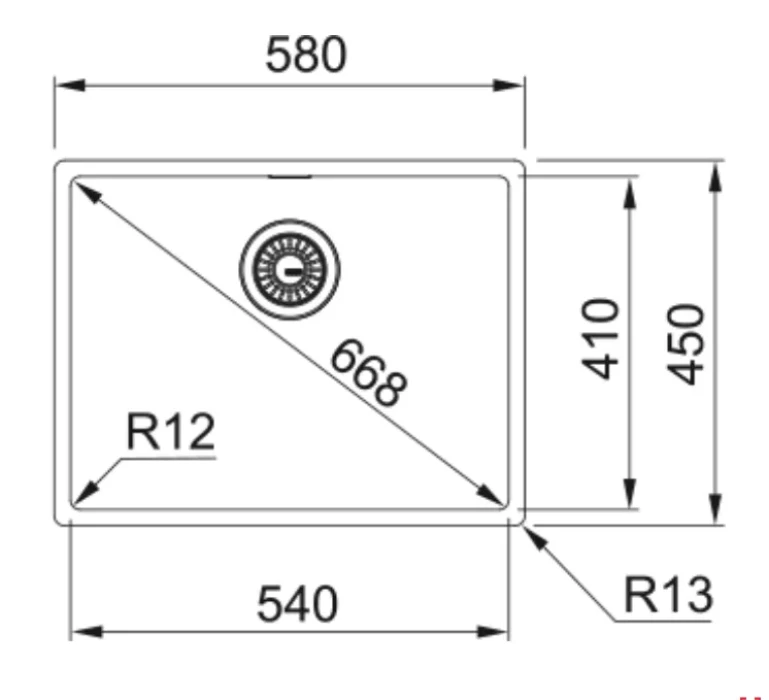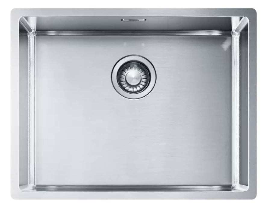 BXX 210/110-54 Franke Box sērijas pulēta nerūsējošā tērauda izlietne, universāla montāžā, 580x450mm, bez žāvēšanas virsmas, ar manuāli vadāmu 3½" ventili, integrēta pārplude, bez maisītāja cauruma izlietnē, ar ventili komplektā, var pievienot atkritumu smalcinātāju