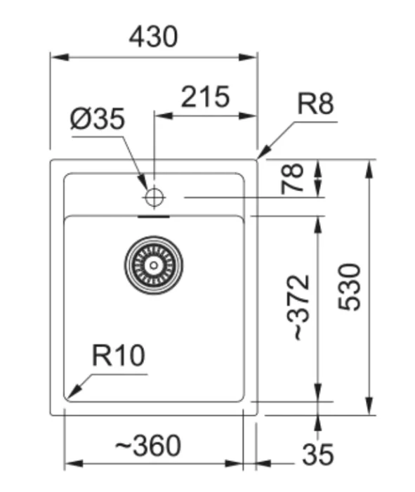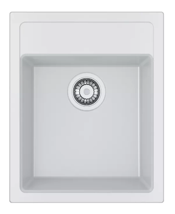 SID 610-40, Tektonīta izlietne, Balta (Arctic balts), iegriežama virsmā, bļodas izmērs 371x385mm un dziļums 200mm, ar 3½" ventilis ar manuālu vadību, paslēpta apaļa pārplūde izietnes sānos, 1 caurums maisītājam, komplektā ietilpst ventiļa un stiprinājumu komplekts.
