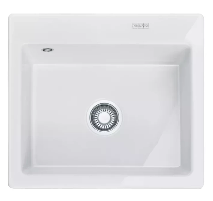 MTK 610-58, Keramiskās izlietnes, 580x510mm, balta, bez žāvēšanas virsmas, 3½" ekscentra ventilis ar spiedpogas vadību, ar apaļu pārplūdi un nosegu, ar Franke logo, 2 caurumi maisītājam un vieta to stiprināšanai