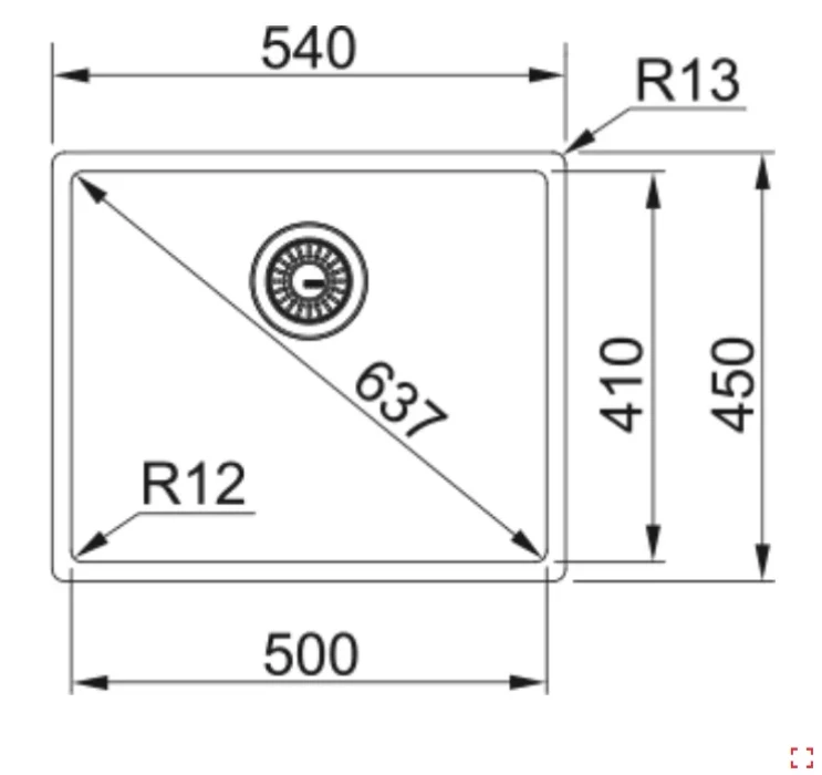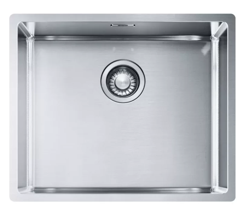 BXX 210/110-50 Franke Box sērijas pulēta nerūsējošā tērauda izlietne, universāla montāžā, 540x450mm, bez žāvēšanas virsmas, ar manuāli vadāmu 3½" ventili, integrēta pārplude, bez maisītāja cauruma izlietnē, ar ventili komplektā, var pievienot atkritumu smalcinātāju