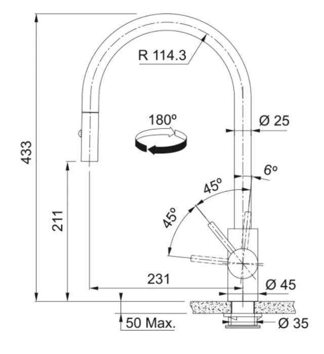 Ūdens maisītājs Eos Neo, Vara tonī, izplūdes veids: Izvelkams uzgalis, pagriešanās leņķis grādos: 180, regulātors no sāniem