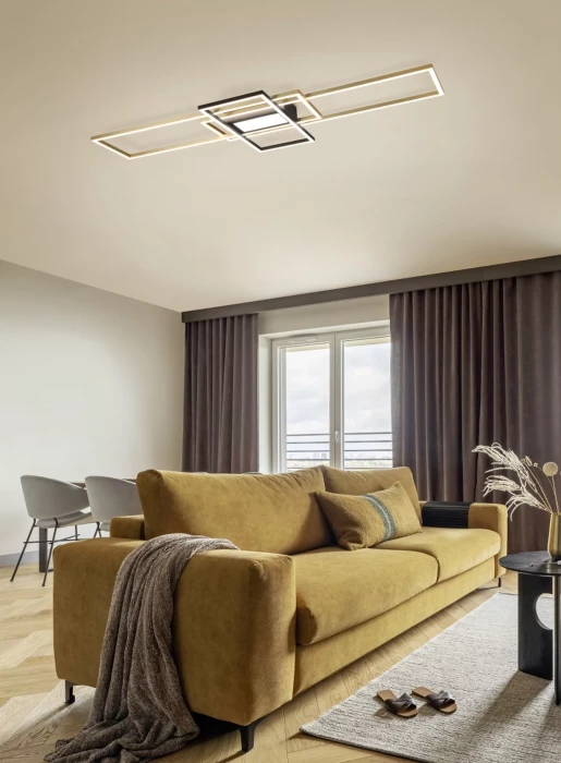Потолочный светильник IRVINE обеспечивает мягкое и атмосферное освещение и впечатляет своим элегантным дизайном, который идеально дополняет любой современный интерьер. Кроме того, светильник впечатляет практичными дополнительными функциями. Светильник имеет функцию ночника, а яркость и цвет освещения можно плавно регулировать, что позволяет индивидуально адаптировать его в зависимости от условий освещения. Благодаря встроенной функции памяти, последний установленный с помощью пульта дистанционного управления сценарий освещения активируется сразу после выключения и включения светильника с помощью настенного выключателя. Выполненный в матовой латуни и матовом черном цвете, светильник можно сочетать со многими интерьерными стилями. Кроме того, светильники оснащены современной светодиодной технологией, которая гарантирует высокое качество света. Светодиодные источники света характеризуются длительным сроком службы и низким тепловыделением.