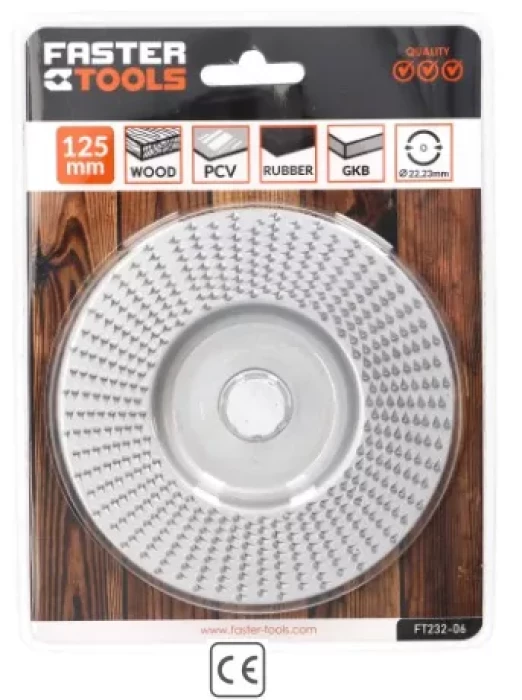 Диск шлифовальный прямой для дерева, ПВХ, резины, GKB 125 мм 22,23 мм мелкий FASTER TOOLS FT232-06