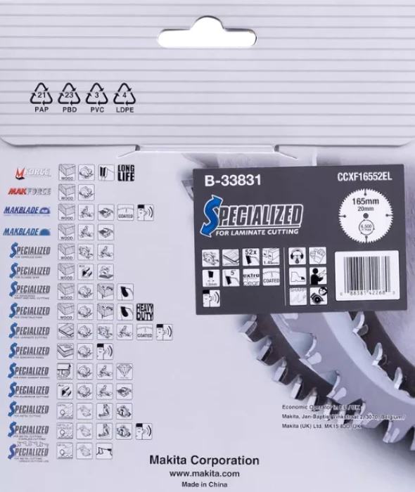 Пильное полотно 165 x 1,45 x 20 мм 5° T52 МДФ/ламинат T.C.T MAKITA B-33831