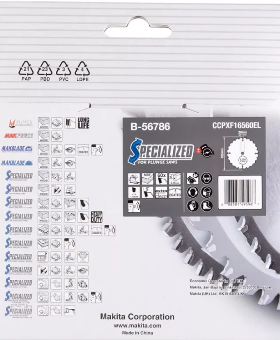 Пильное полотно 165 x 2,0 x 20 мм 5° T60 МДФ/ламинат T.C.T MAKITA B-56786