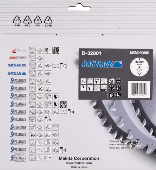 Пильное полотно 260 x 2,3 x 30 мм, 5° T60 T.C.T. MAKITA B-32801