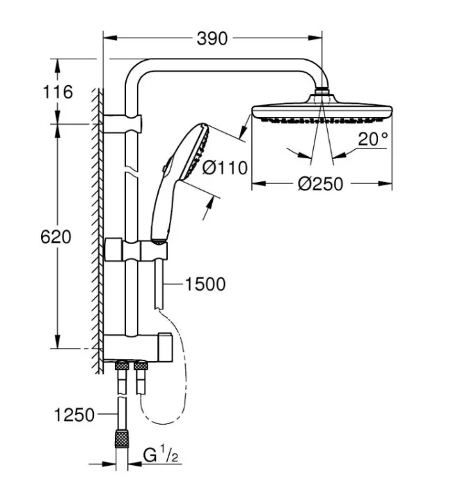 GROHE Душевая система без термостата с переключателем Vitalio Start 250, хром, 26680001